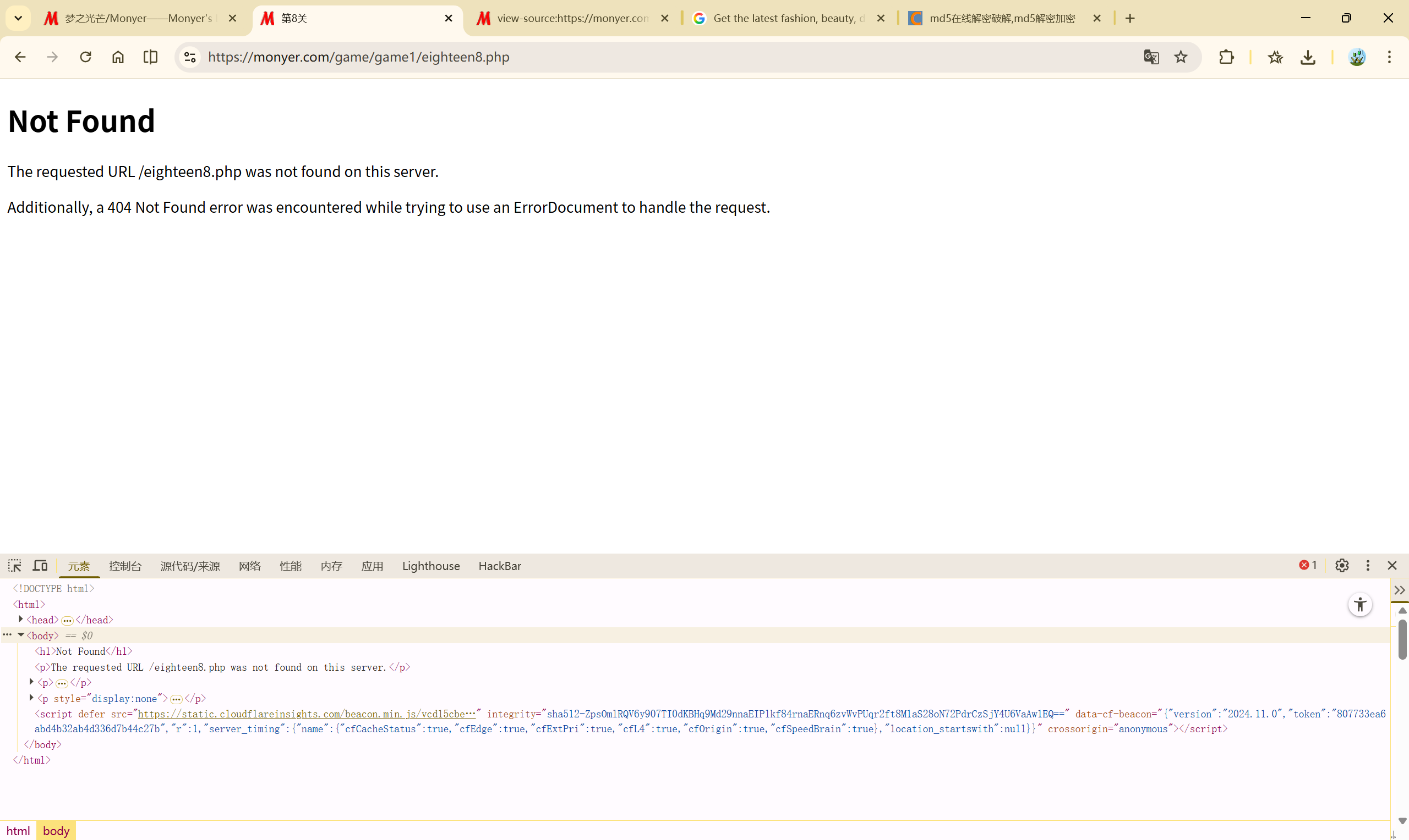 进入之后发现是一个高仿的 404 页面,实际上我们已经到了第八关了