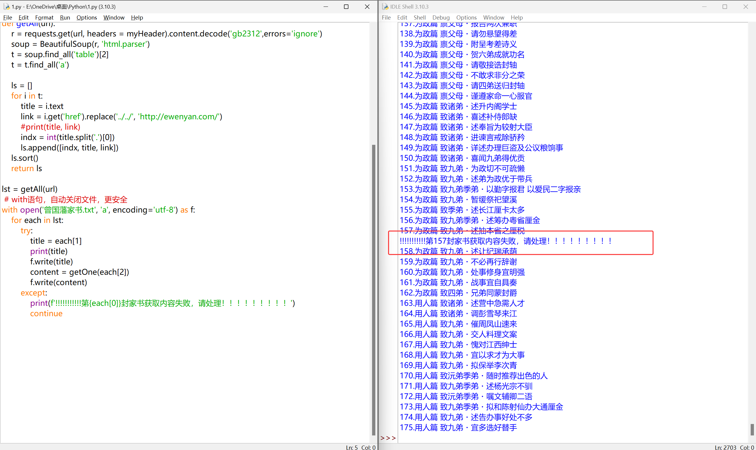 print(f'!!!!!!!!!!!第{each[0]}封家书获取内容失败,请处理!!!!!!!!!')
