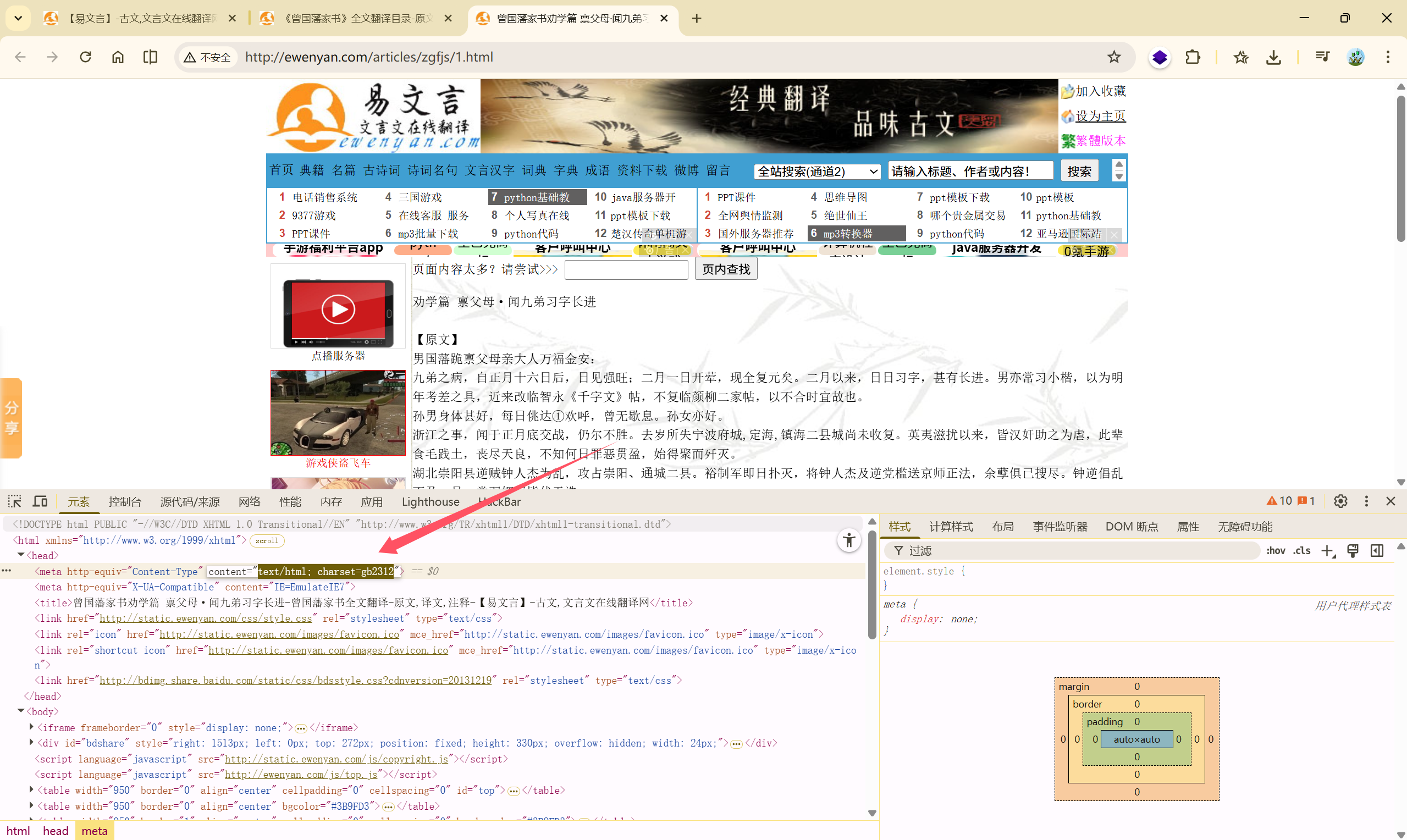 目标网站:http://ewenyan.com/articles/zgfjs/1.html
