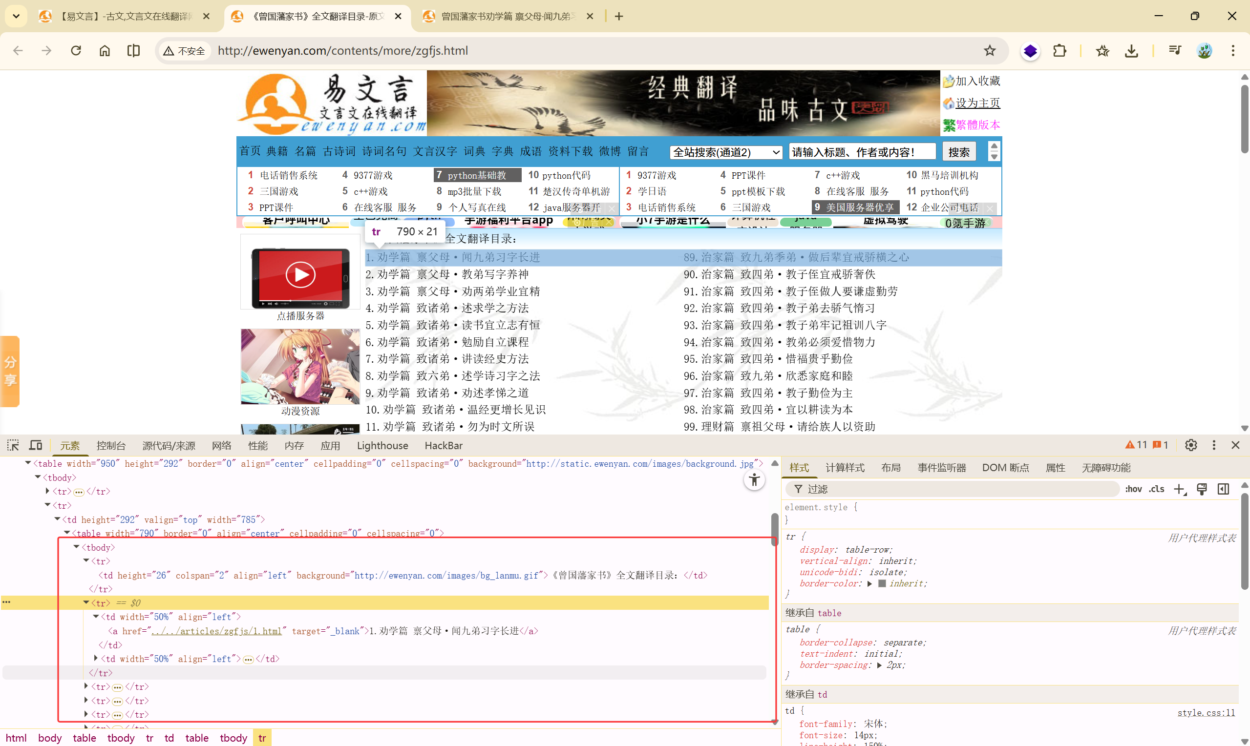 所以先把所有的<table>标签抓取下来,然后按对应顺序爬取文章。