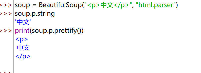 | soup = BeautifulSoup("<p>中文</p>", "html.parser")