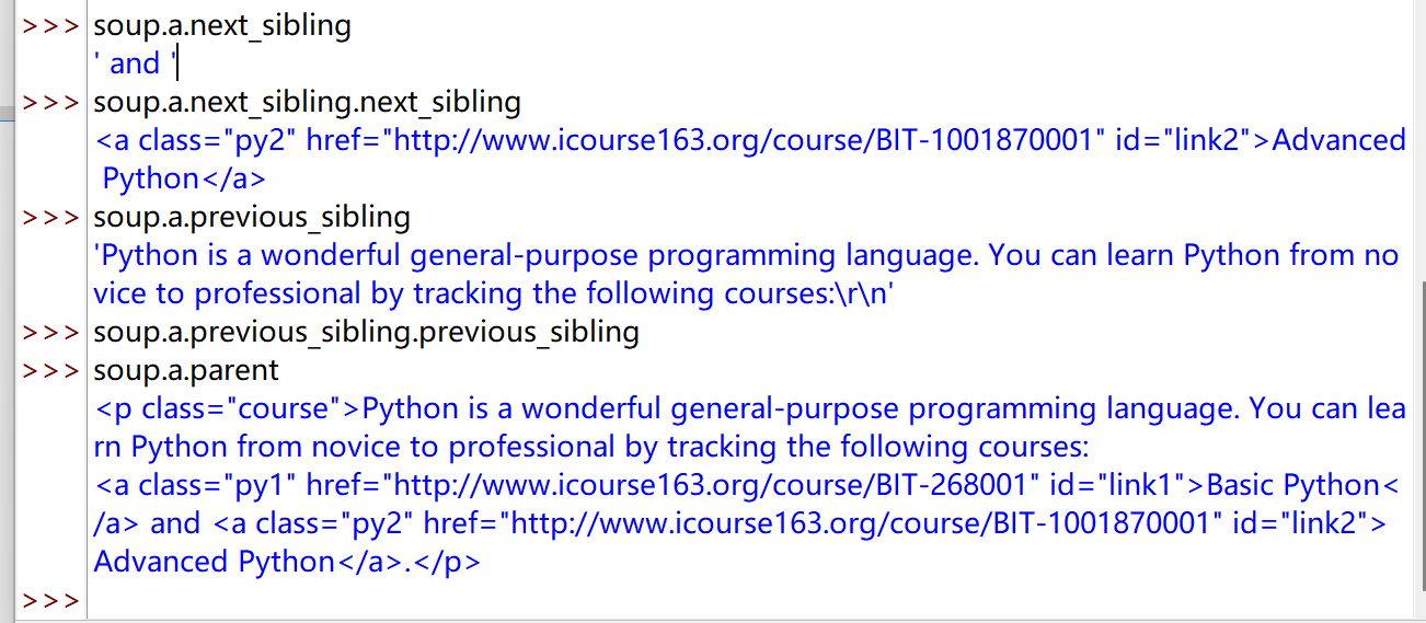 <a class="py1" href="http://www.icourse163.org/course/BIT-268001" id="link1">Basic Python</a> and <a class="py2" href="http://www.icourse163.org/course/BIT-1001870001" id="link2">Advanced Python</a>.</p>, '\n']