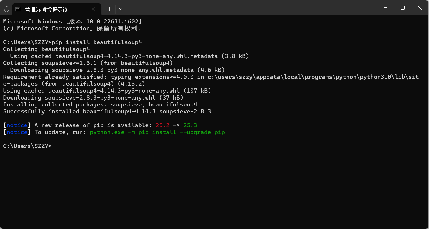 ImportError: cannot import name 'BeaytifulSoup' from 'bs4' (C:\Users\SZZY\AppData\Local\Programs\Python\Python310\lib\site-packages\bs4\__init__.py)