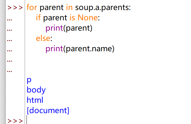 遍历所有先辈节点,包括 soup 本身,所以要区别判断