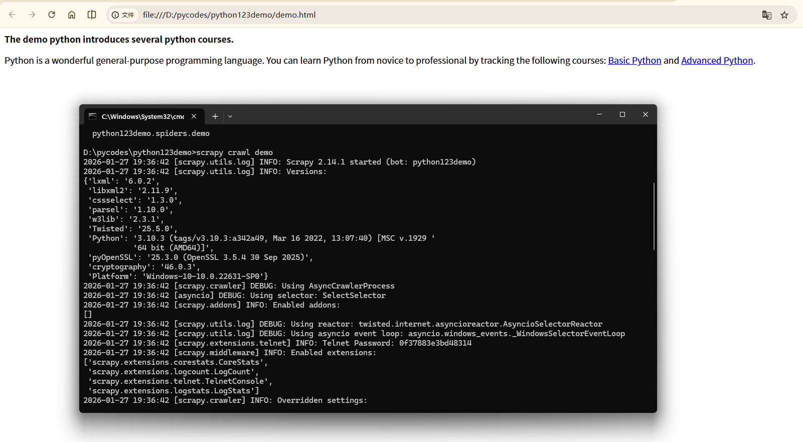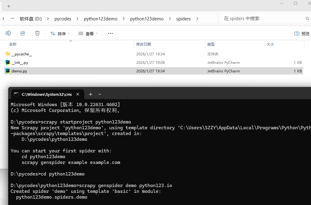 进入工程目录(D:\pycodes\python123demo),然后执行如下命令: