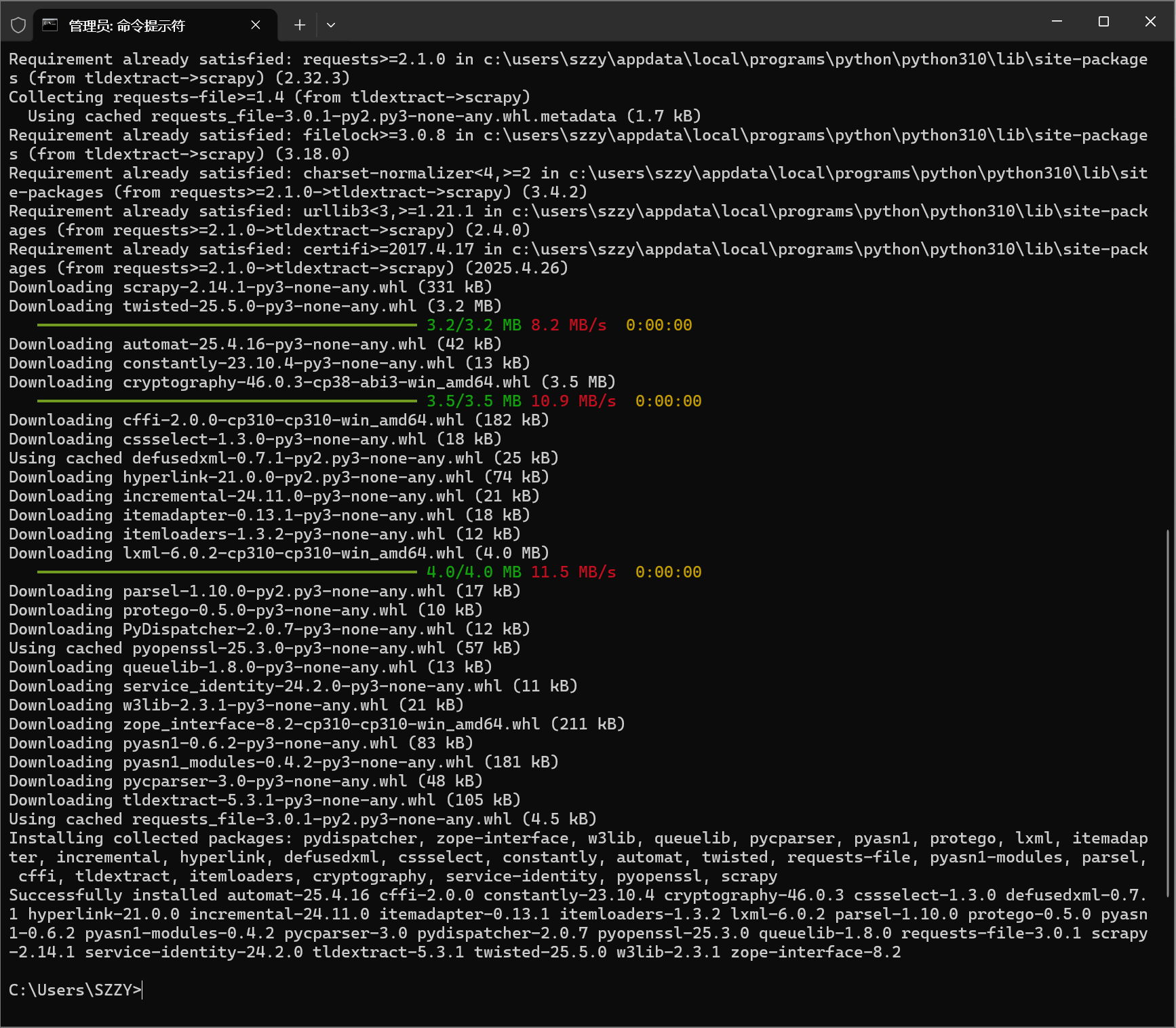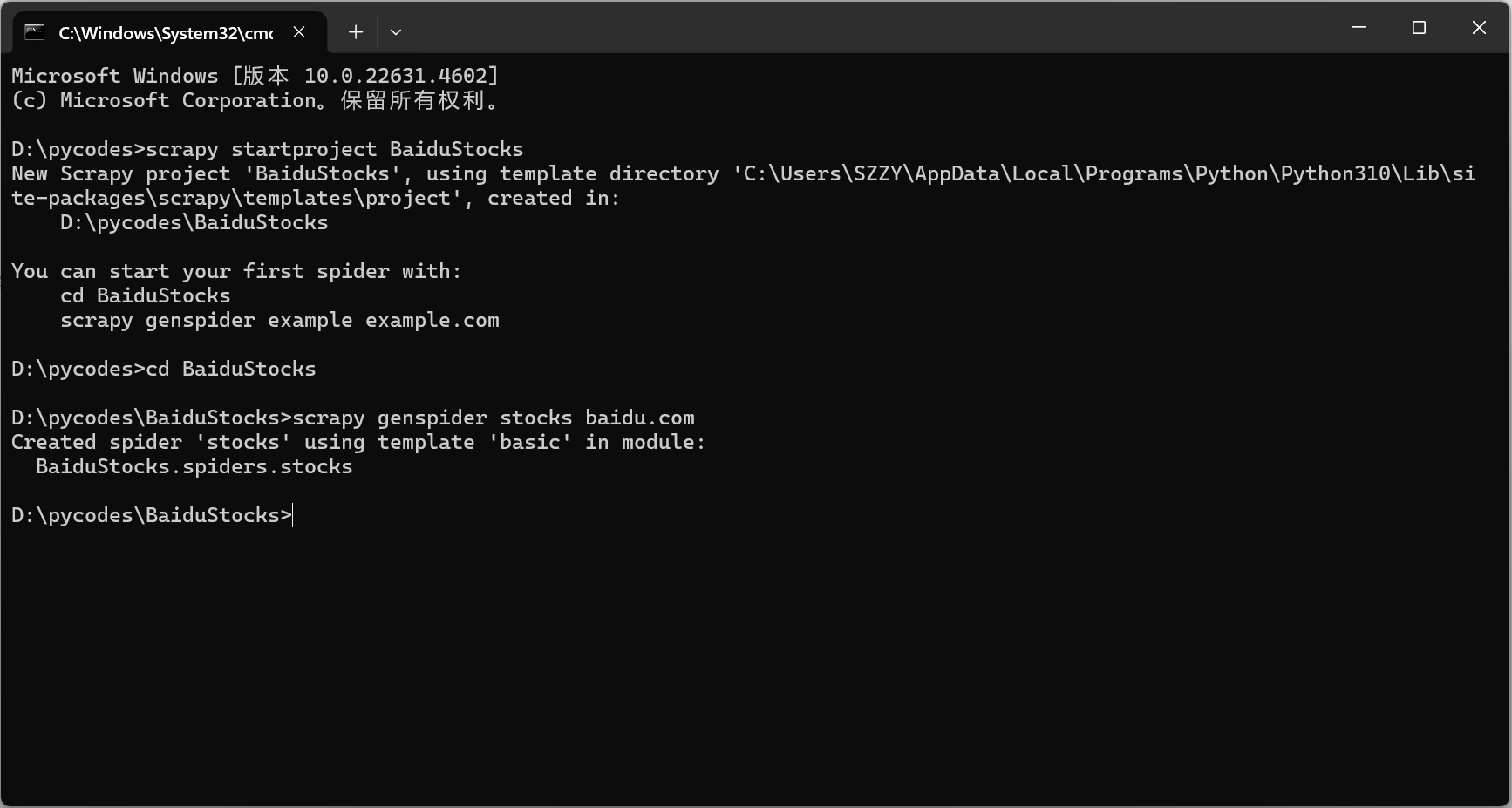 New Scrapy project 'BaiduStocks', using template directory 'C:\Users\SZZY\AppData\Local\Programs\Python\Python310\Lib\site-packages\scrapy\templates\project', created in: