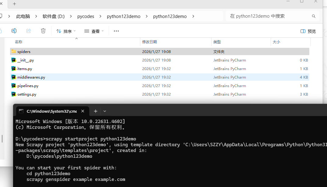 选取一个目录(D:\pycodes\),然后执行如下命令: