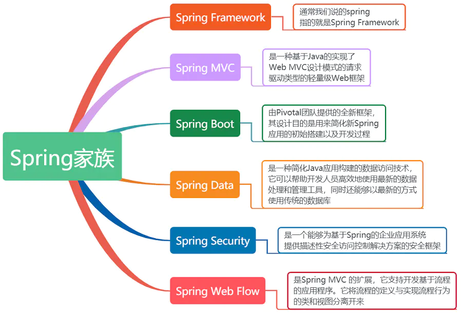 Spring是一个轻量级的Java开源框架,用于配置、管理和维护Bean(组件)的一种框架,其核心理念就是IoC(Inversion of Control,控制反转) 和 AOP(AspectOrientedProgramming, 面向切面编程)。现如今Spring全家桶已是一个庞大的家族