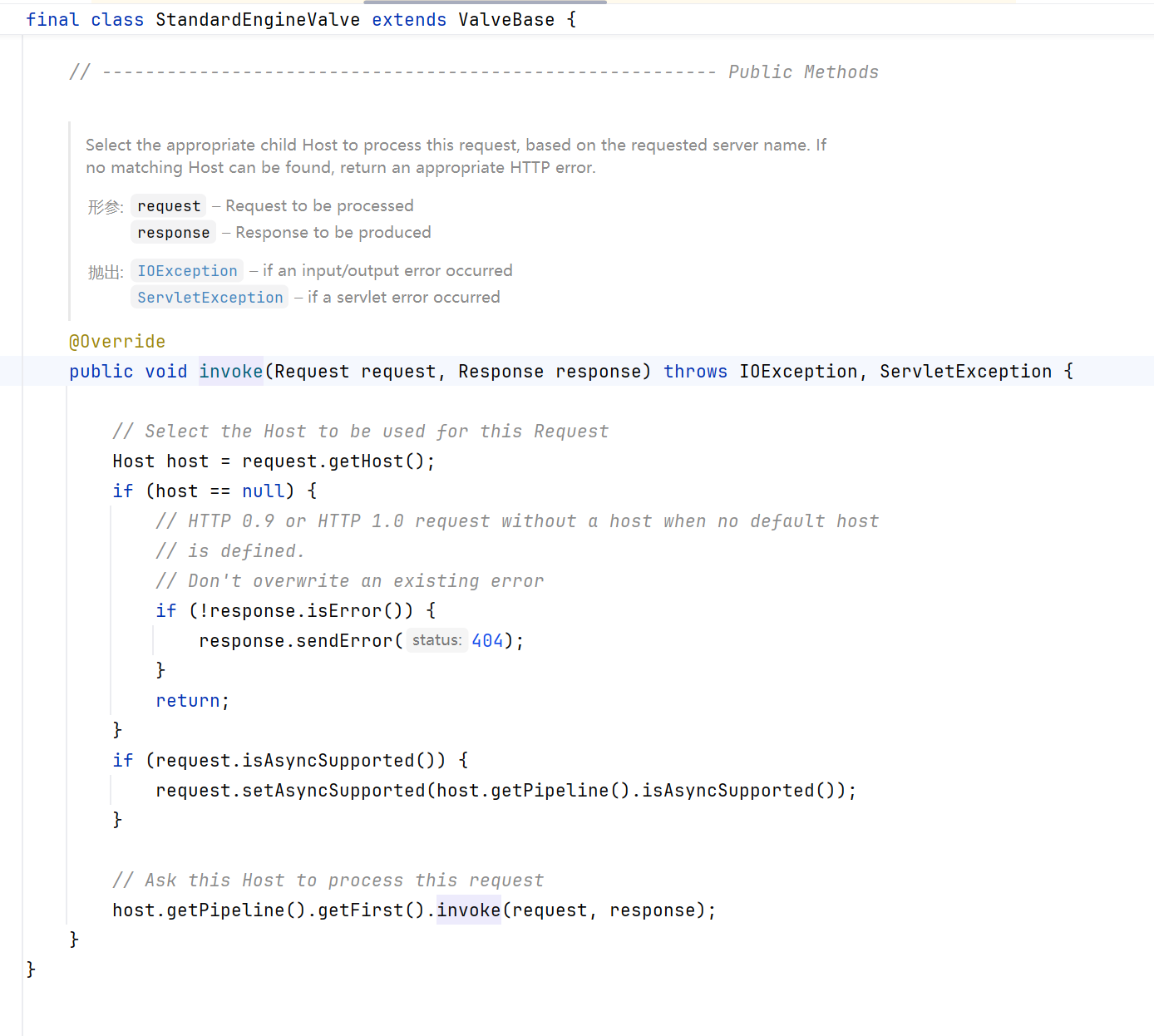 host.getPipeline().getFirst().invoke(request, response)实现调用后续的Valve。