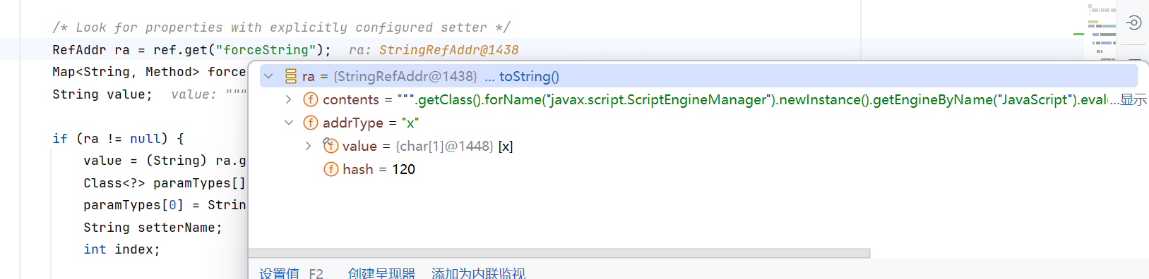 resourceRef.add(new StringRefAddr("forceString", "x=eval"));