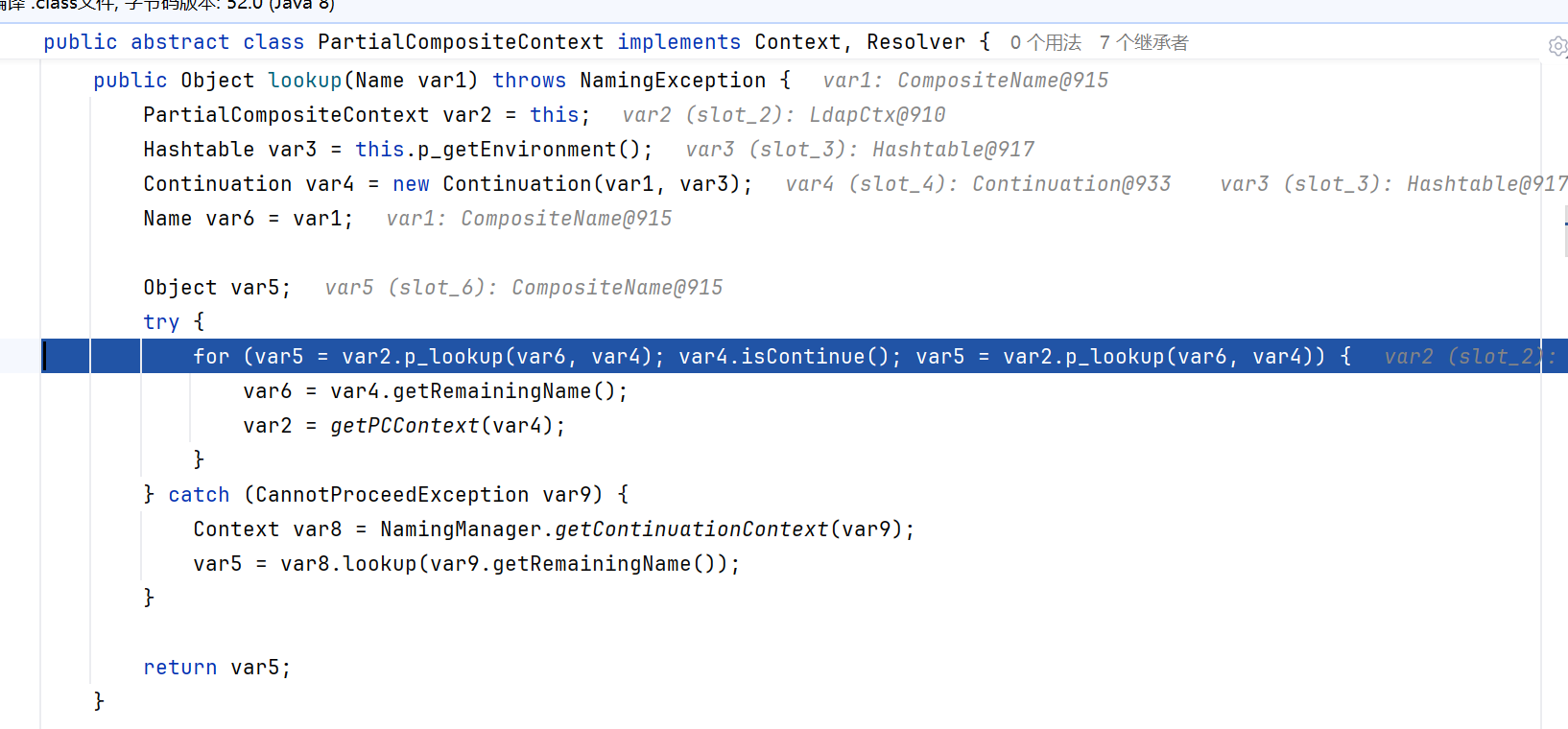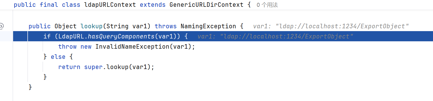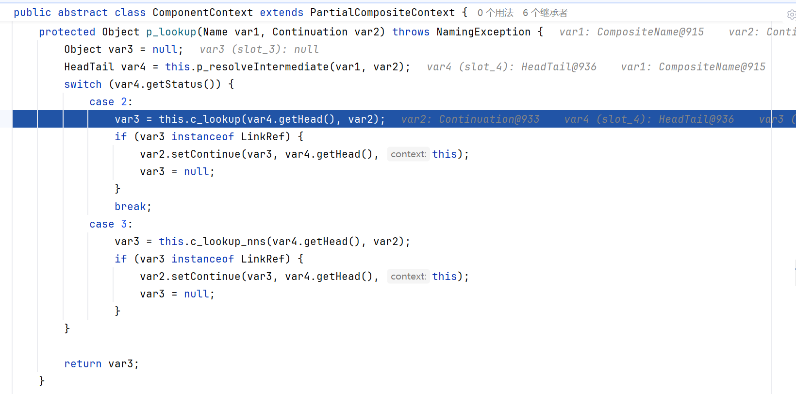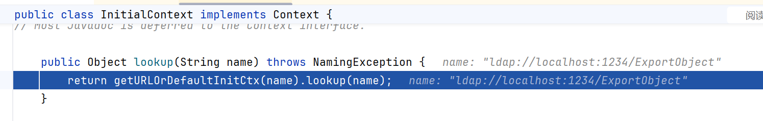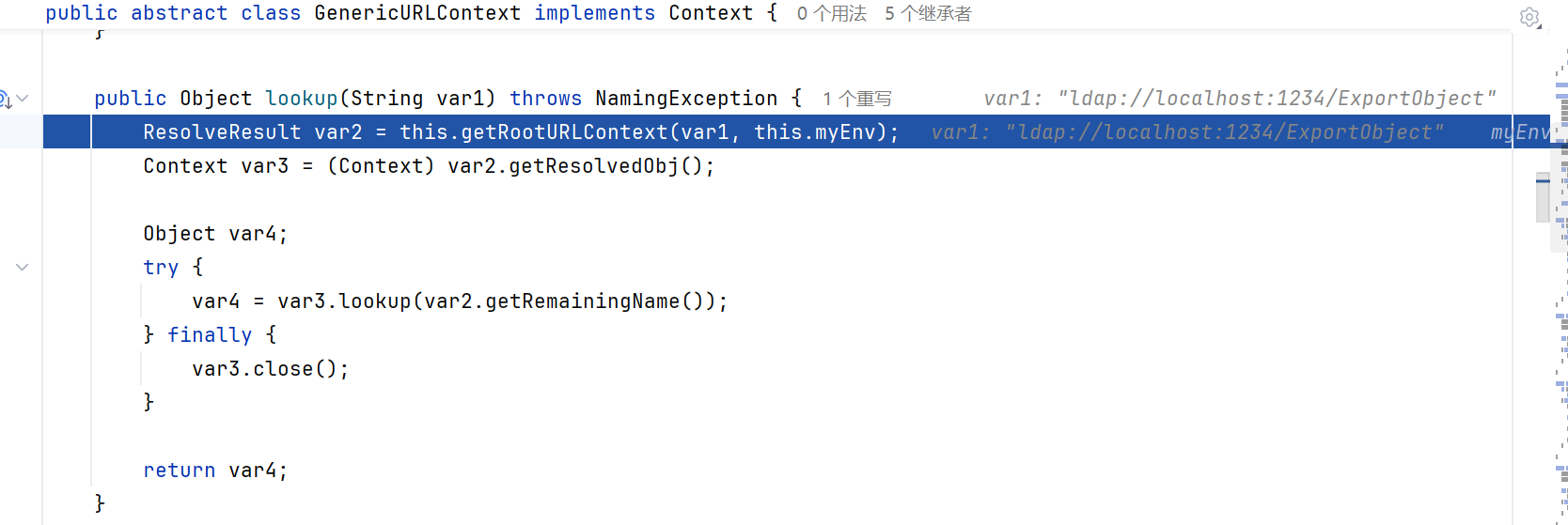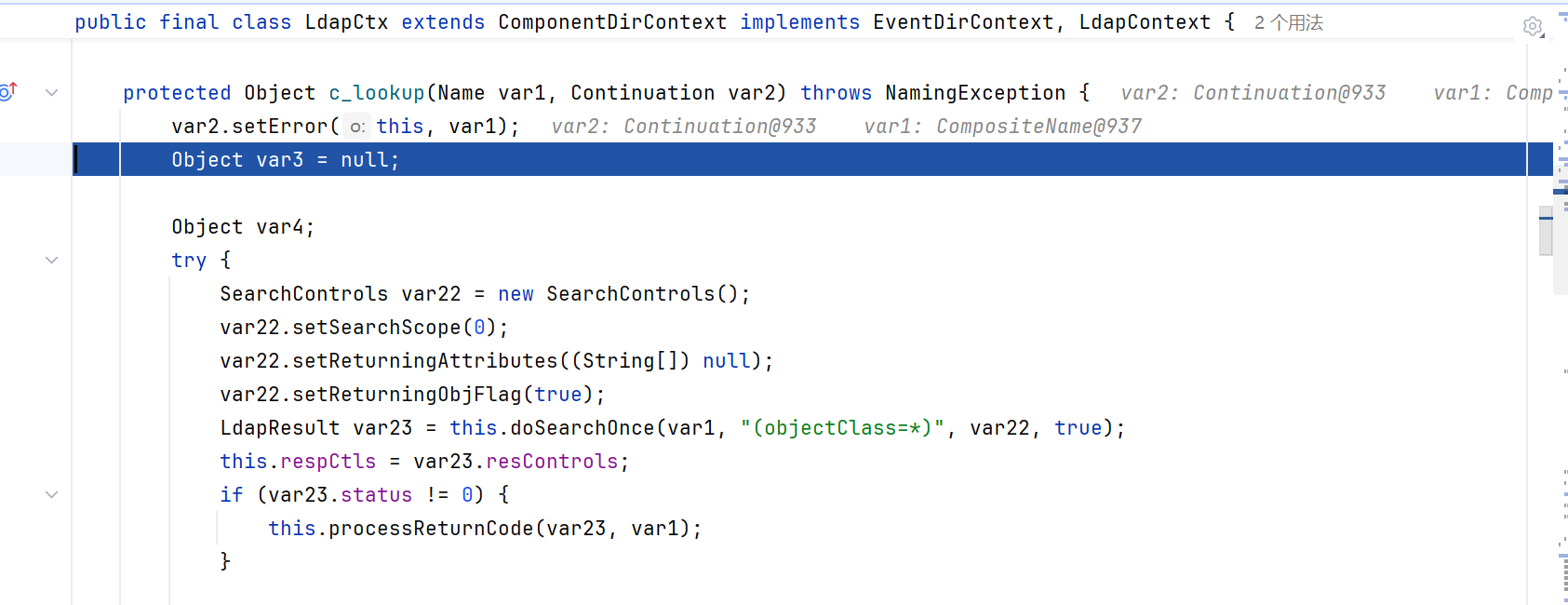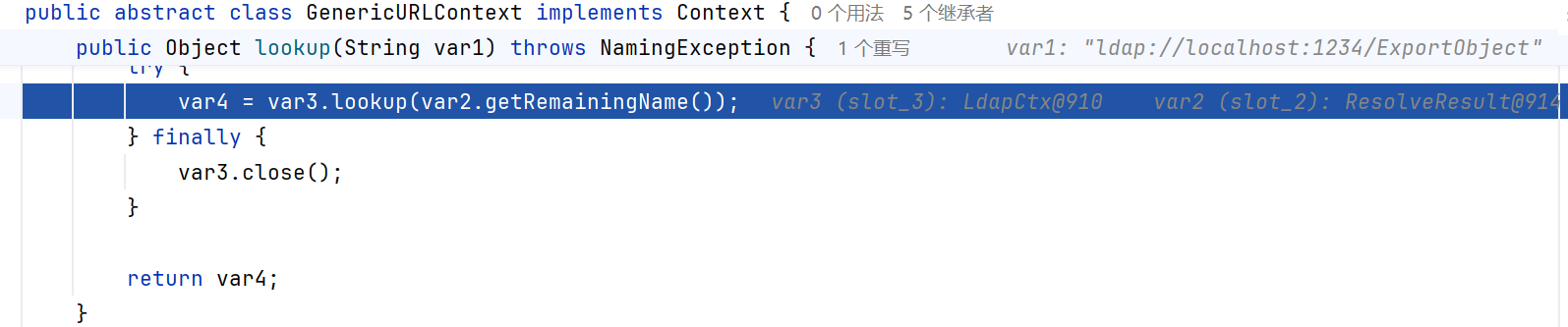 RegistryImpl_Stub.lookup 到这里就不用跟了,攻击方式和 RMI 中攻击注册中心一样,