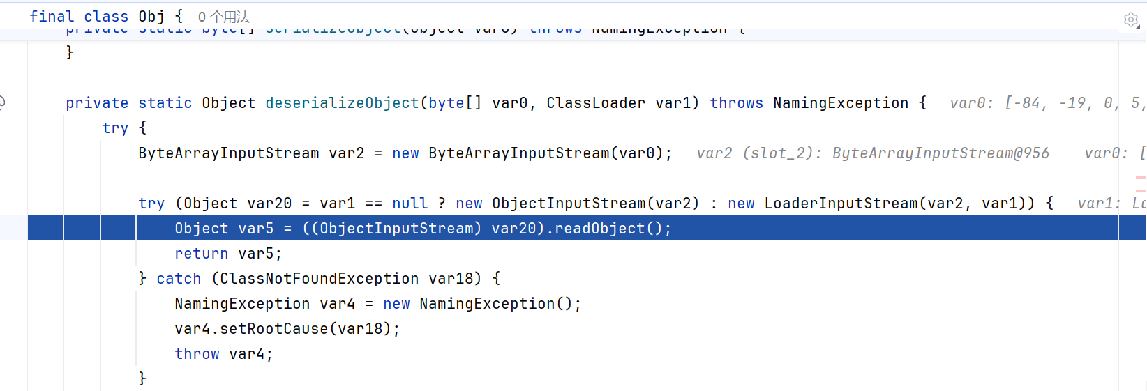 而 deserializaObject 对象中恰好有 readObject ,字节码在此处被反序列化造成漏洞。