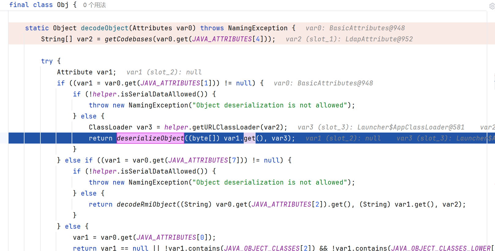 从上面是通过 p_lookup.c_lookup 进入到 decodeObject 中,这里是重点要关注的,