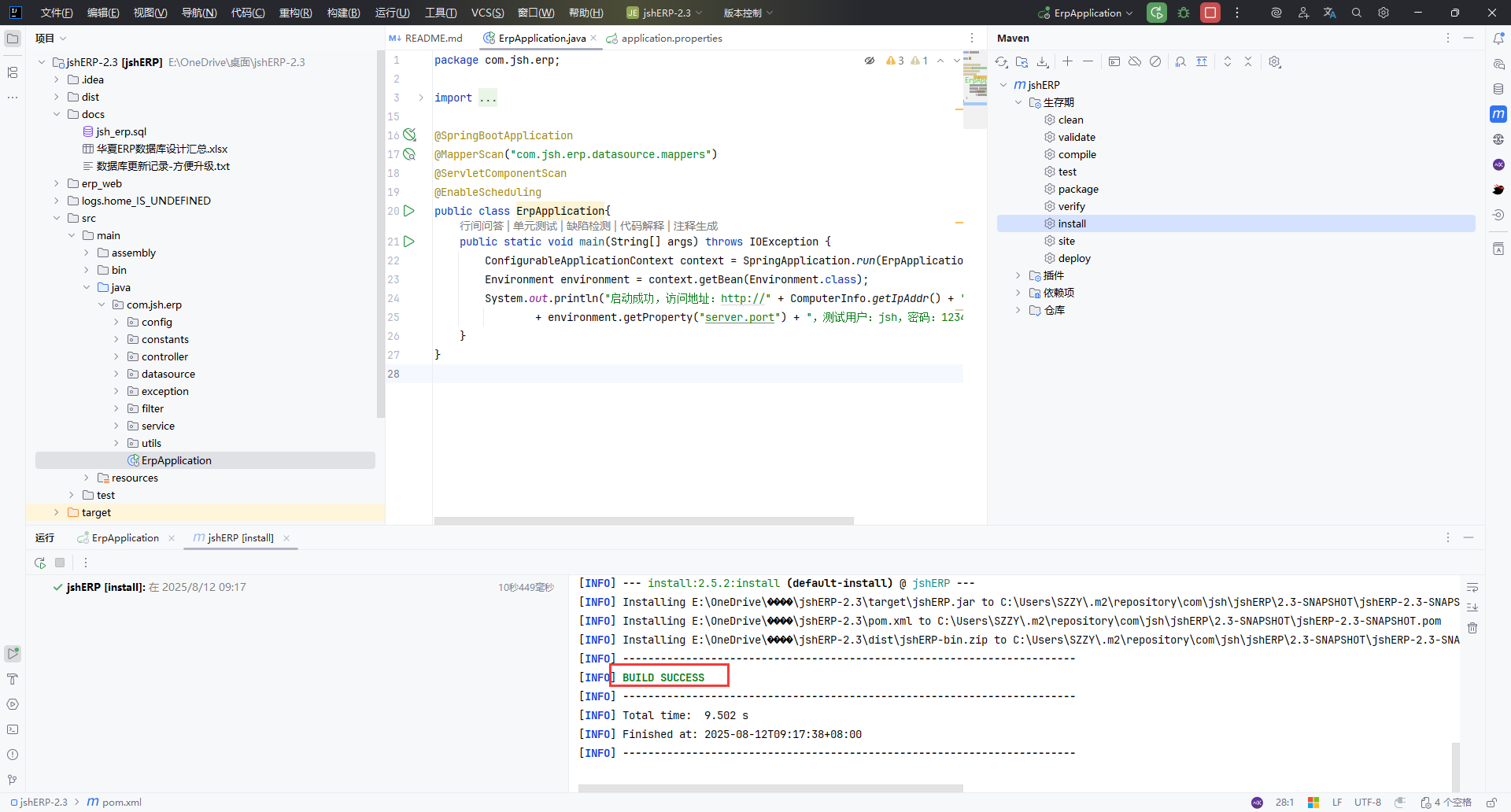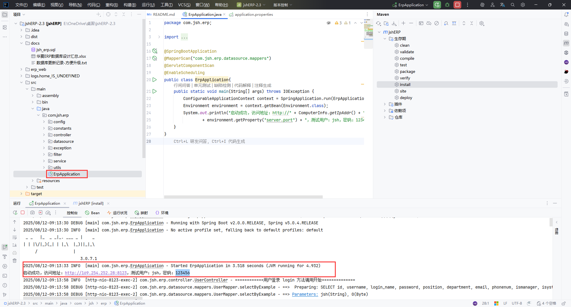 运行 ErpApplication.java 启动程序