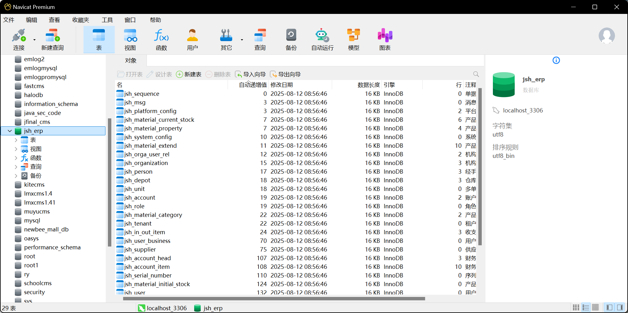数据库新建jsh_erp数据库,导入sql文件