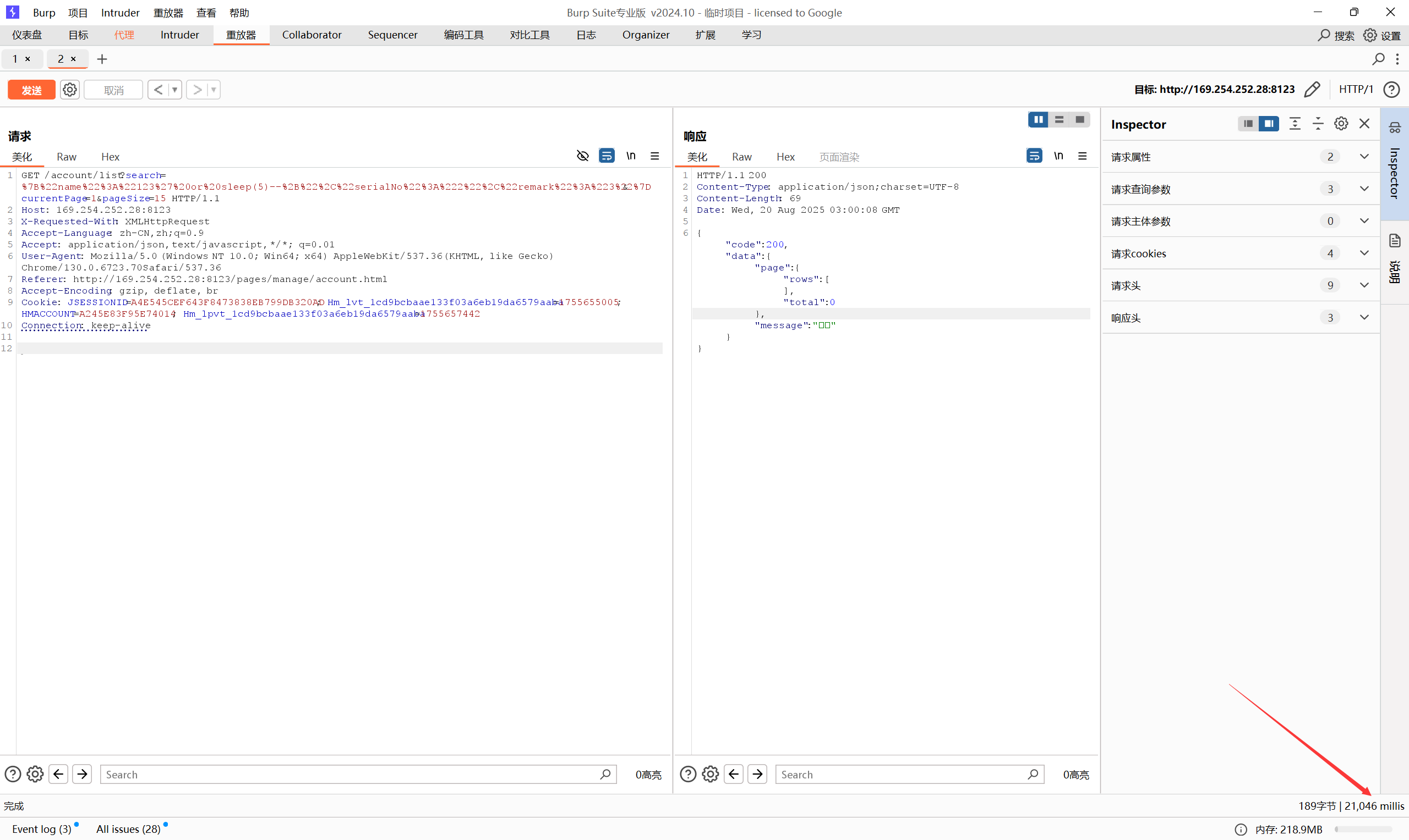 这一部分依旧是 LogCostFilter.java 发现的漏洞点,在SQL 注入中,我们登录到后台进行的注入,那么结合鉴权漏洞,就可以未登录进行SQL注入。